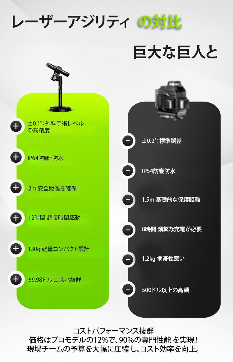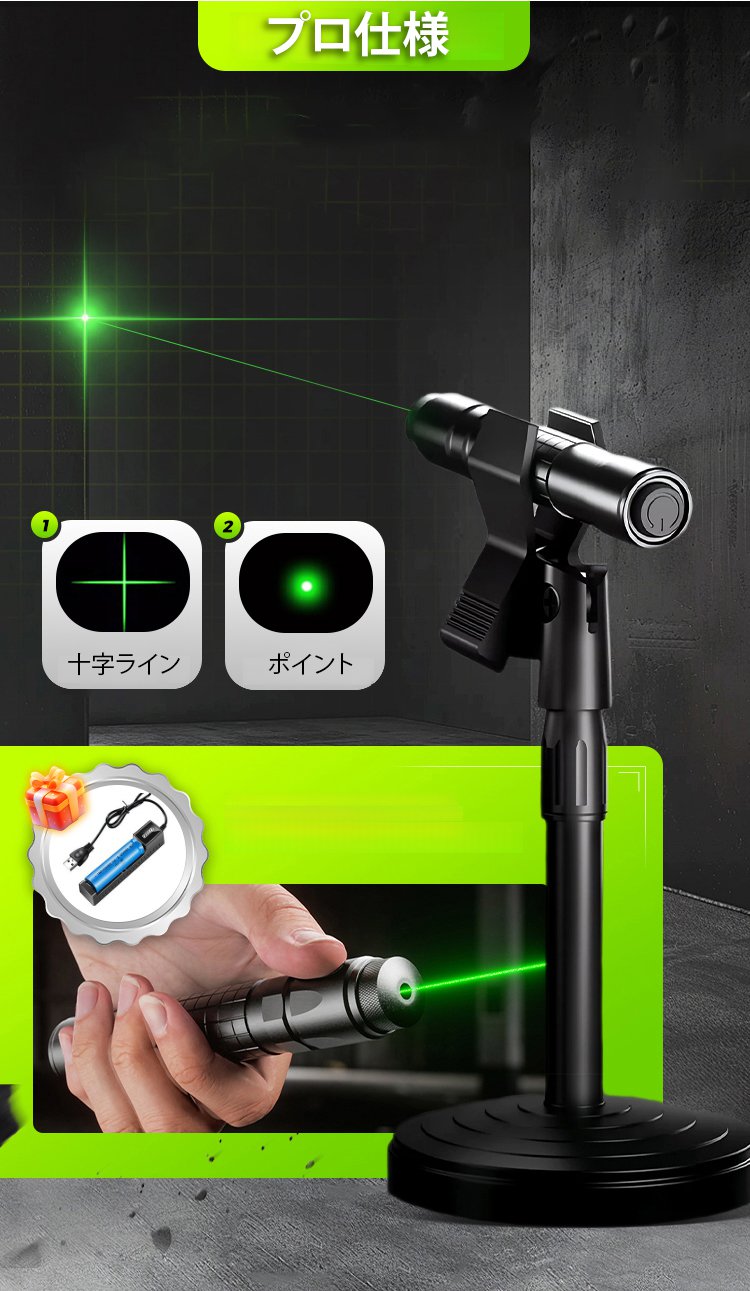 【太陽光の下でもくっきり・屋内屋外兼用】工事用レーザーレベル ❤️ 5000回測定・ミリ単位精度・3モード