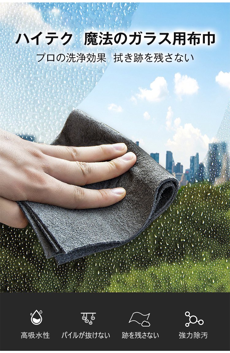 ガラス用布巾 拭き跡が残らない、ピカピカ、臭くなりにくい、ハイテク、5倍吸水