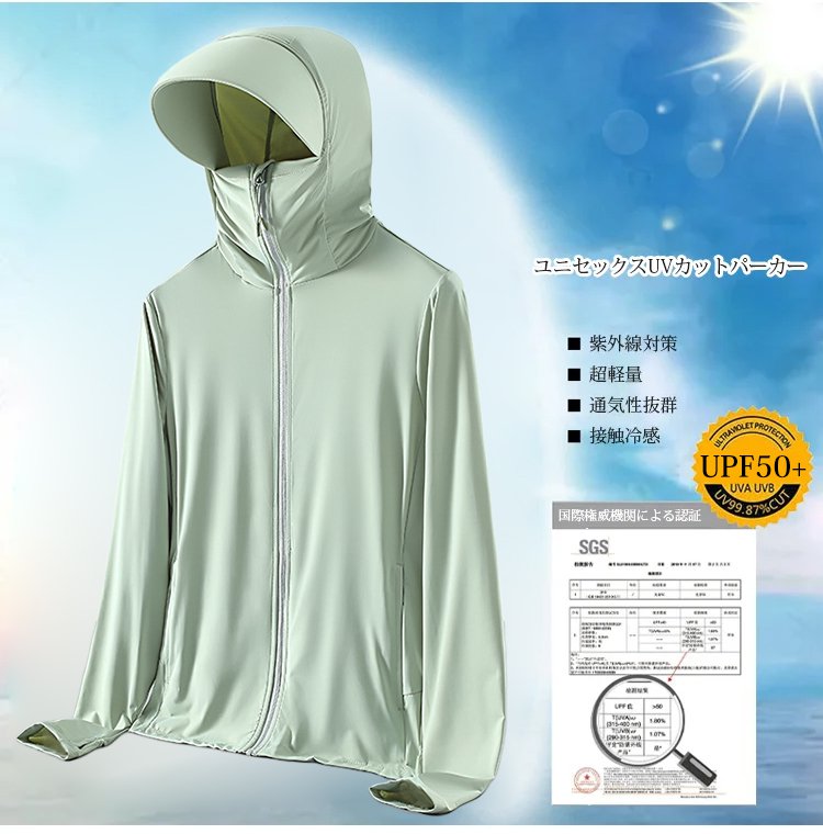 【50倍日焼け止め】男女兼用の薄手の日焼け止めパーカー