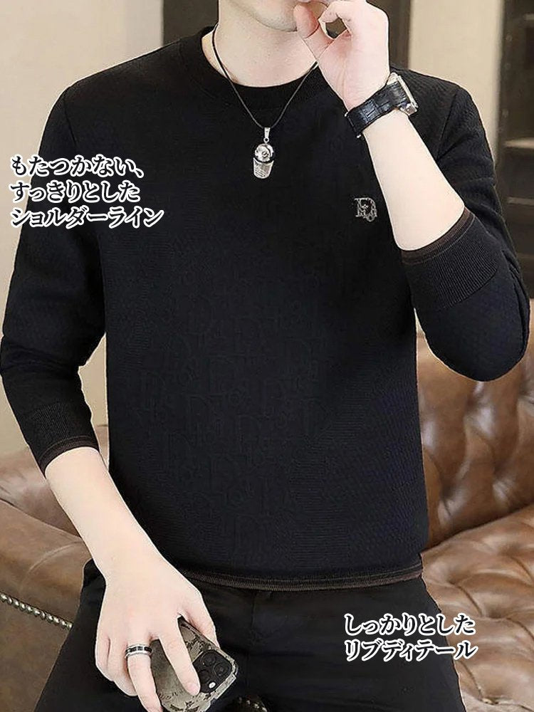 メンズ 厚手ジャカードニット ❤️このウールとシルクのブレンドセーターは、暖かさを確保するだけでなく、シンプルでクラシックなデザインスタイルを備えており、さまざまなシーンに適しています。