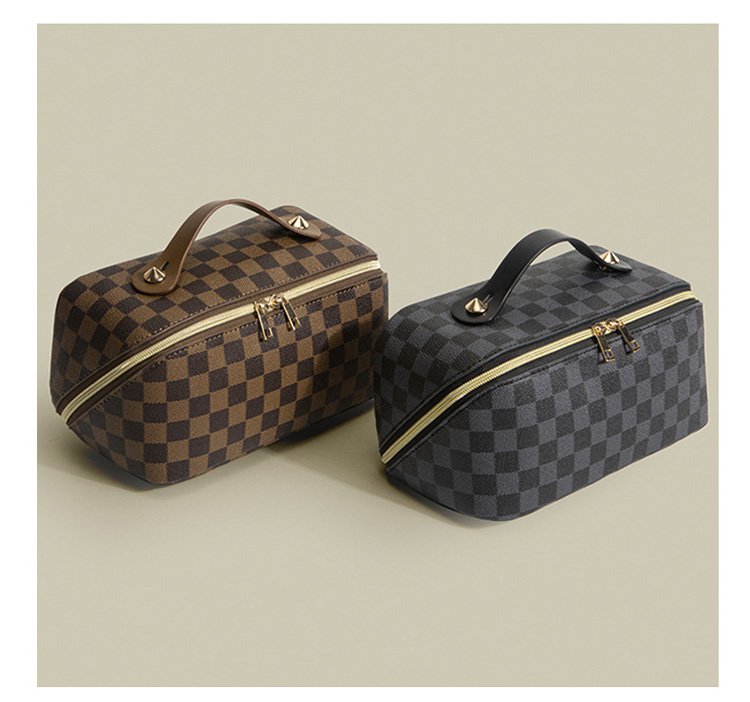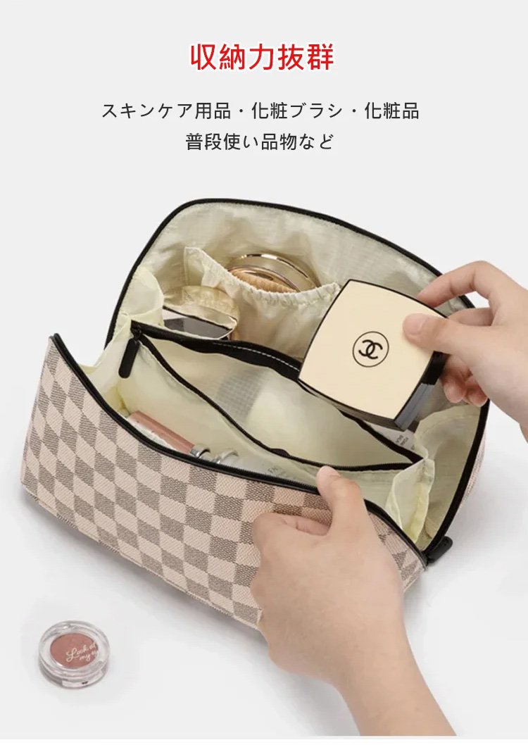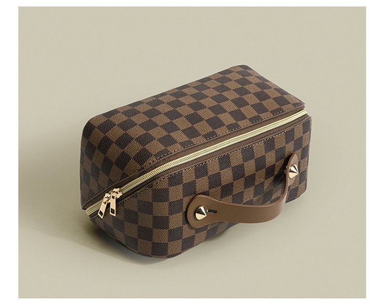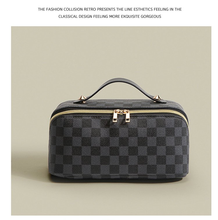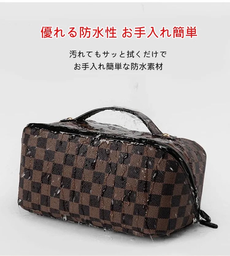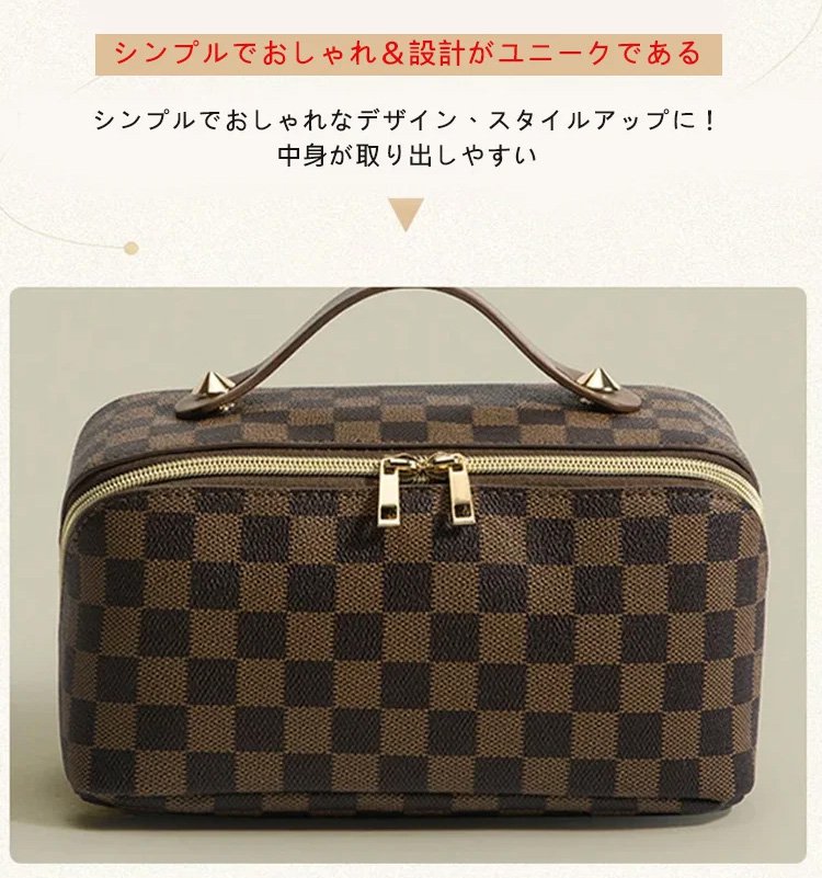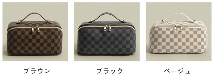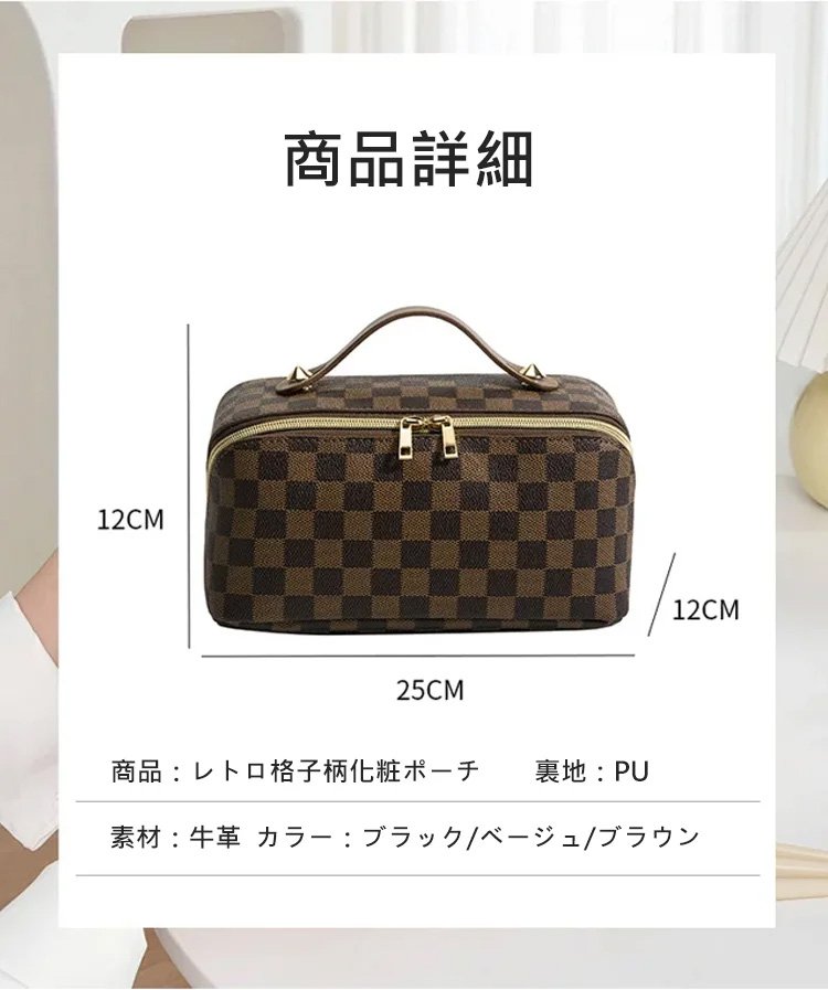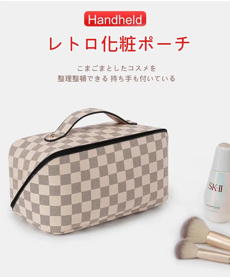レトロ格子柄化粧ポーチ
