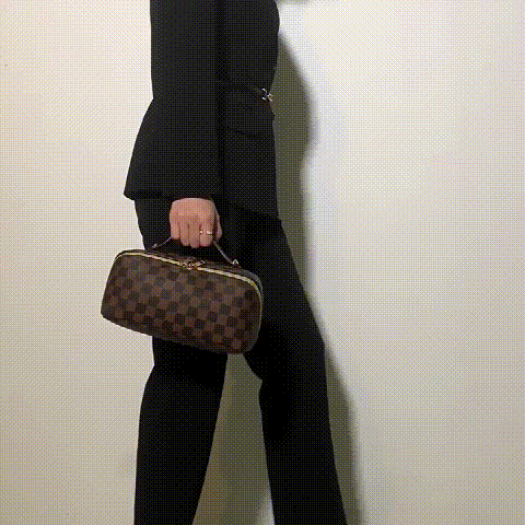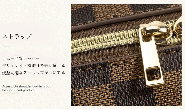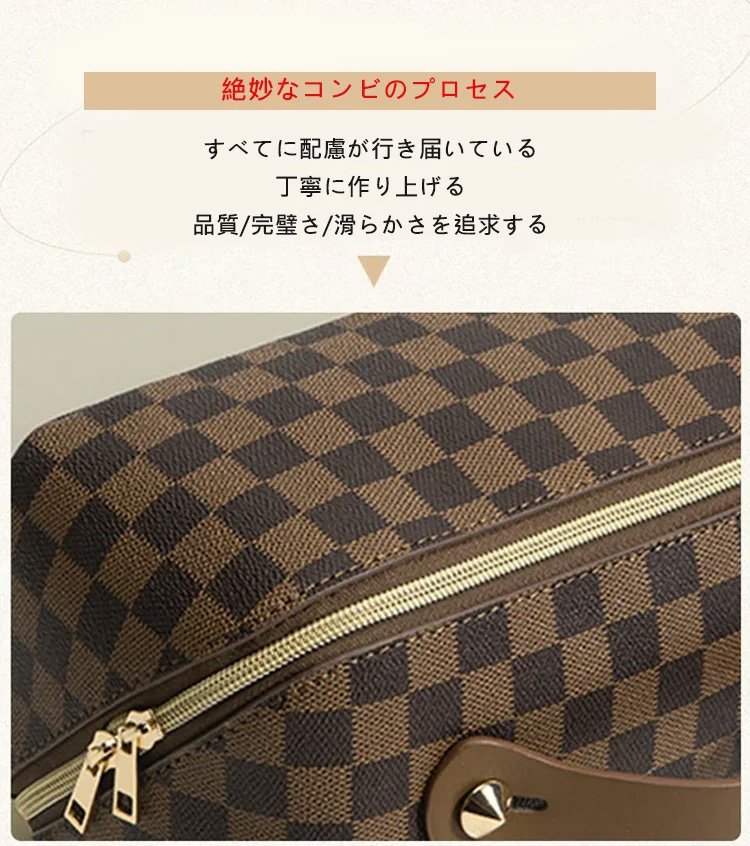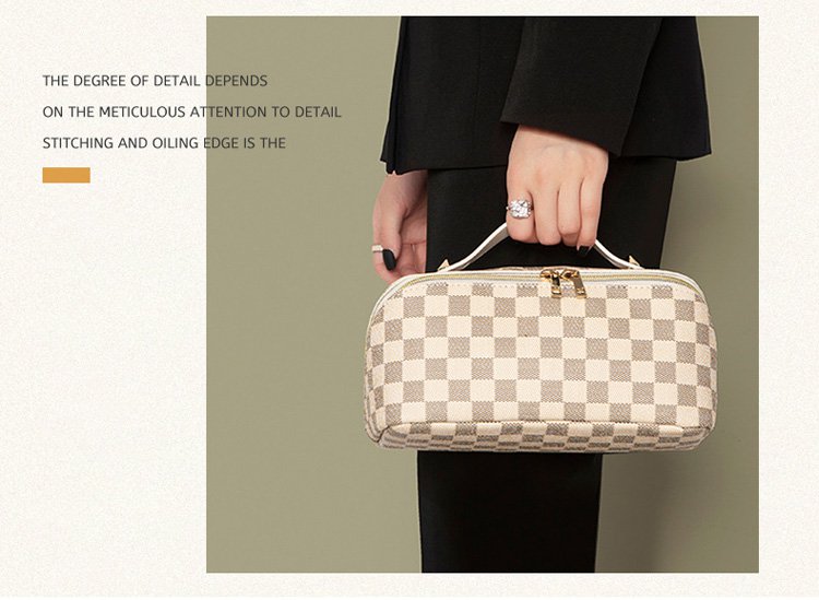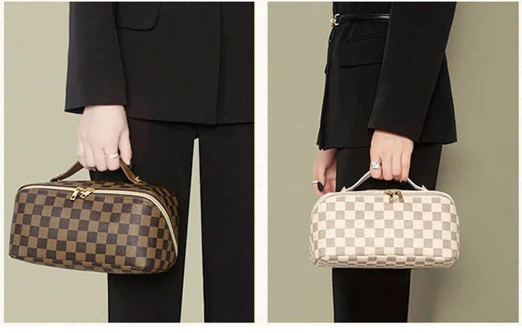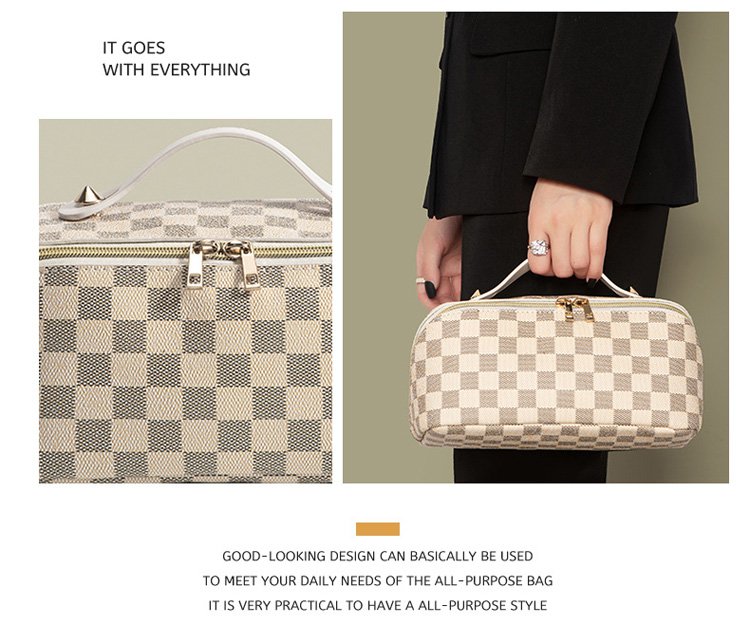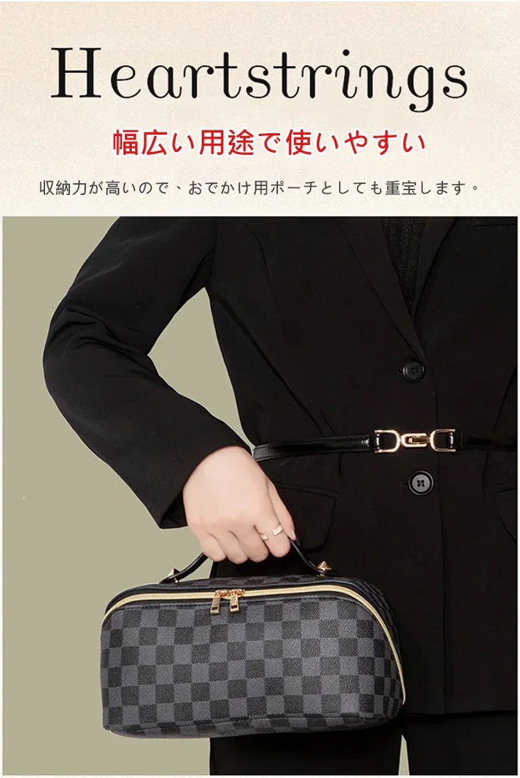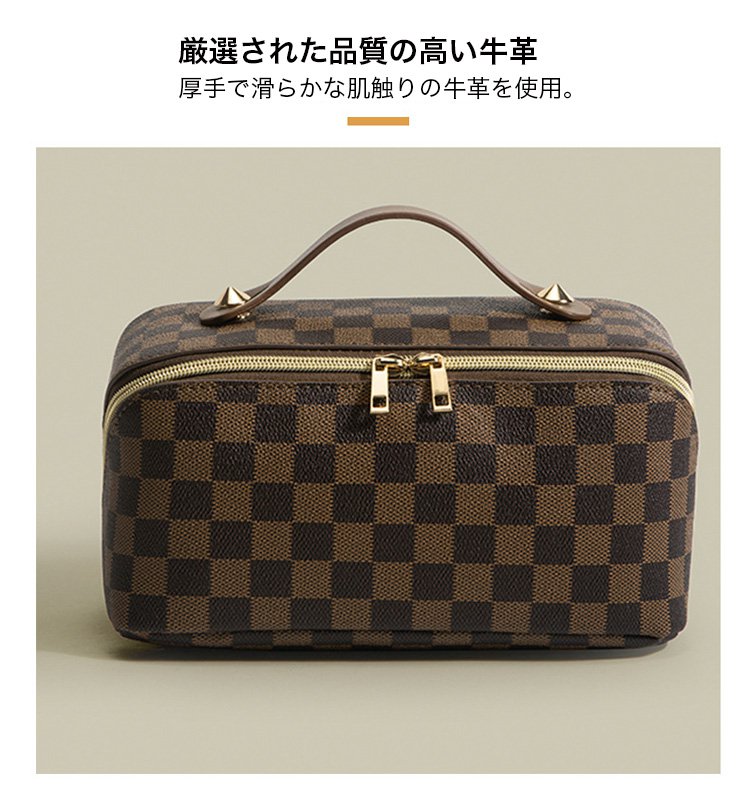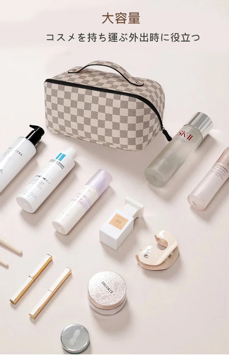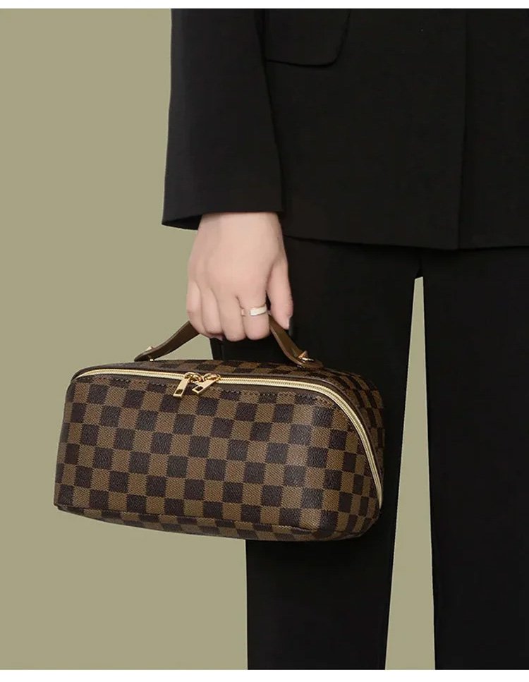 レトロ格子柄化粧ポーチ